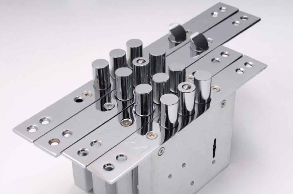 Проверку на силовые нагрузки (силовые воздействия на ригели замка) замок прошёл уверенно благодаря усиленной конструкции ригельной пластины. Далеко не все производители столь же серьезно подходят к данному вопросу. У замков Apecs ригельная плаcтина врезана в ригели и каждый ригель с двух сторон приварен к пластине, что позволяет выдерживать значительные нагрузки (4-й класс по ГОСТу).