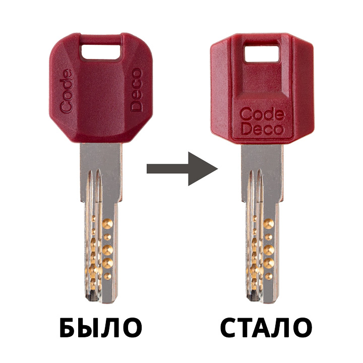 Информируем вас, что в новых поступлениях цилиндровых механизмов Code Deco изменилась форма головки ключа. В настоящее время в продаже представлены цилиндры как со старой, так и с обновлённой формой головки ключа.